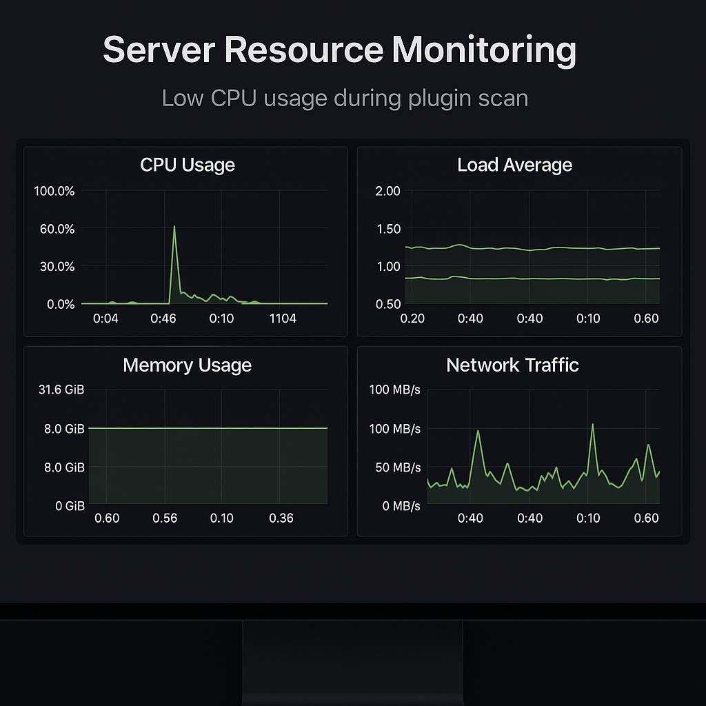Saya pernah cek server load via htop saat scan berjalan. Di VPS dengan 2 CPU cores, load average cuma naik 0.2-0.3. Bandingkan dengan plugin lain yang pernah saya coba: bisa naik sampe 2.0+ dan bikin website timeout.